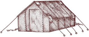The classic for serious outdoorsmen, these time-honored cabins provide a warm and dry home away from home. They are made of 12-ounce, double-filled white canvas and are reinforced at stress points. These tents are complete with ropes and toggles. The standard tent is built with closed gable ends, door opening on the right.